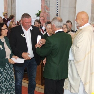 „Wenn sie sich als Ehepaare im Ehesakrament haben segnen und bestätigen lassen, dann ist das in der Tat etwas Großes, etwas Weitreichendes“, sagte der Priester in seiner Predigt. Die Eheleute hätten auf Gott vertraut und seien ihm gefolgt. „Ein Anlass, Ihnen von Herzen zu gratulieren und Ihnen danke zu sagen für Ihr Zeugnis, dass es möglich ist, diesen Weg, für den Sie sich einmal entschieden haben, gemeinsam zu gehen.“ Fest im Glauben zu stehen und an der Liebe festzuhalten, am einmal geschlossenen Ehebund, liege gar nicht so weit auseinander, sondern greife ineinander. „Die Ehe ist ein Abbild der Liebe, mit der Gott sich an uns, seine geliebten Geschöpfe, gebunden hat.“ Der Glaube sei „ein wunderbares Geschenk Gottes an uns. Unglaublich – ich glaube! Weil Gott uns dazu befähigt.“ So befähige der Glaube die Menschen, einander zugewandt zu sein – immer wieder von Gott selbst ermutigt.