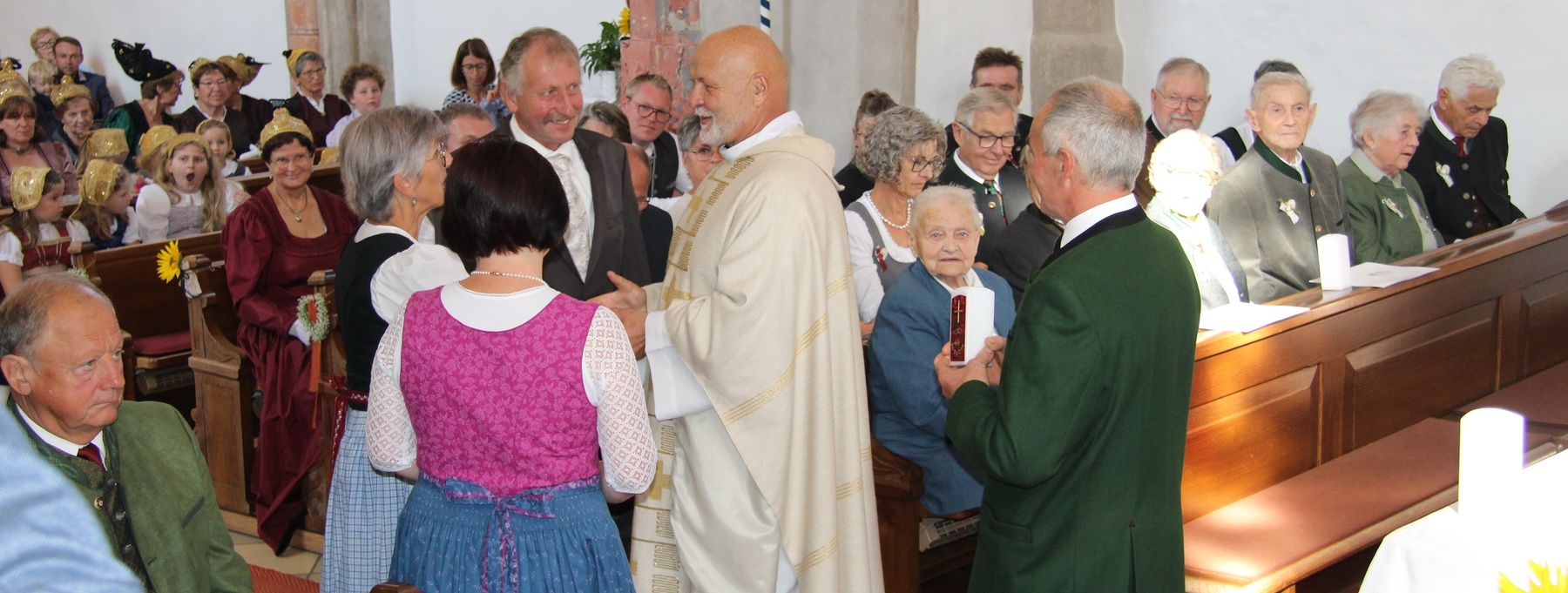 Diersbach  – Sie kommen aus Diersbach, um ihr Ehejubiläum zu feiern: 24 Paare und ihre Familien haben am 21. September  gemeinsam mit Pfarrkurat Thaddäus Kret Gottesdienst in der Kirche  gefeiert . Darunter waren viele Goldjubilare, aber auch Eheleute, die ihre diamante  Hochzeit feiern.