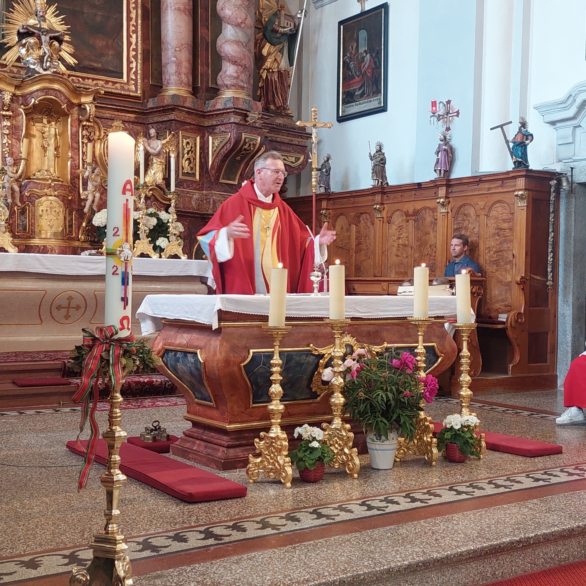 Am Tag der Firmung, Pfingstmontag, 09.06., war die Aufstellung beim Pfarrheim um 9:45. Die Musikkappelle und Goldhauben-/Trachtengruppe begleiteten dann die Firmlinge zur Kirche.