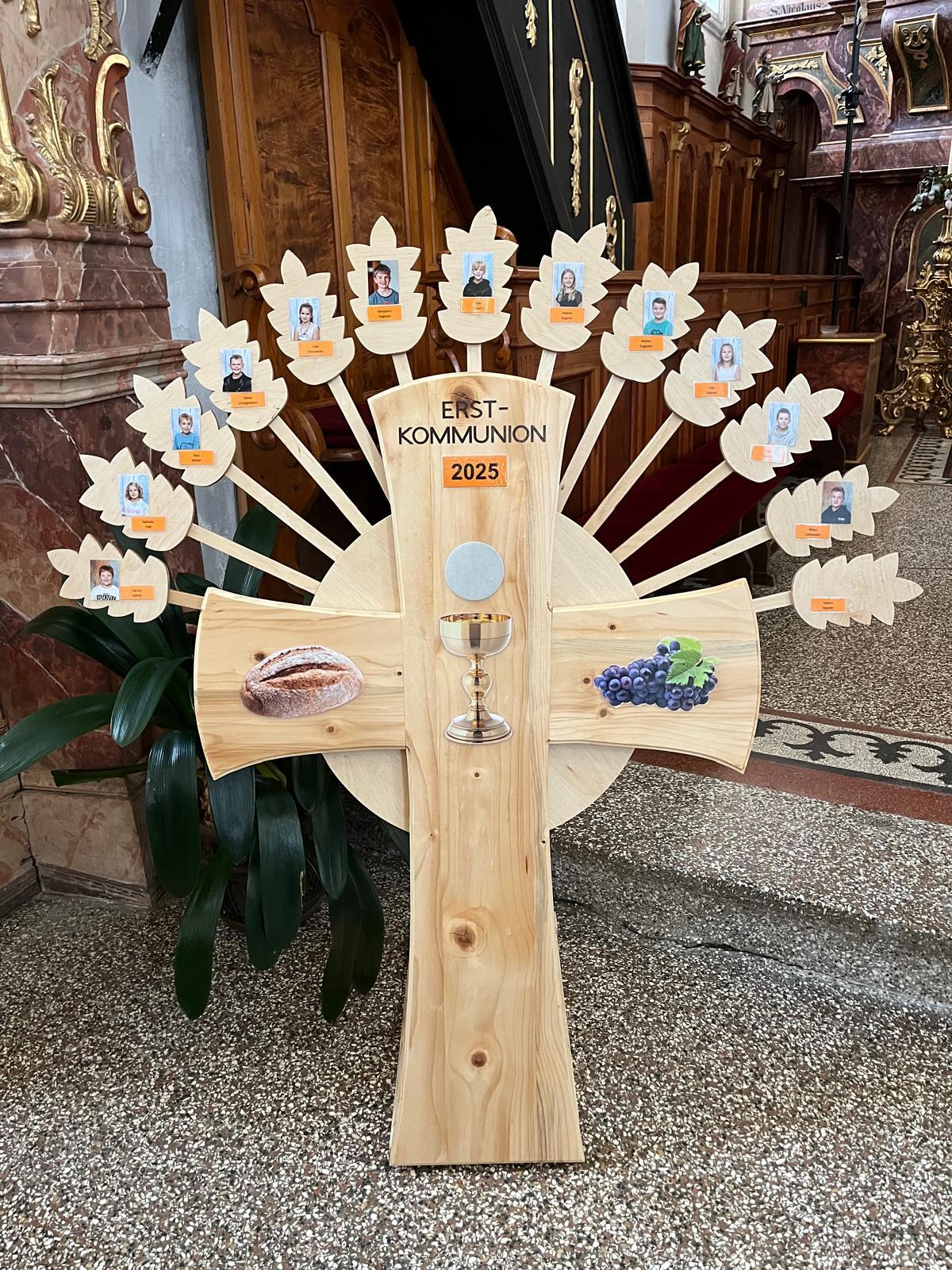 Am Erstkommuniontag selbst war die Aufstellung beim Pfarrheim um 9:45. Die Musikkappelle begleitete dann die Erstkommunionkinder zur Kirche, wo die Hl. Messe mit ihnen gefeiert wurde und sie das erste Mal Jesus in der Gestalt des Hl. Brotes empfangen durften.