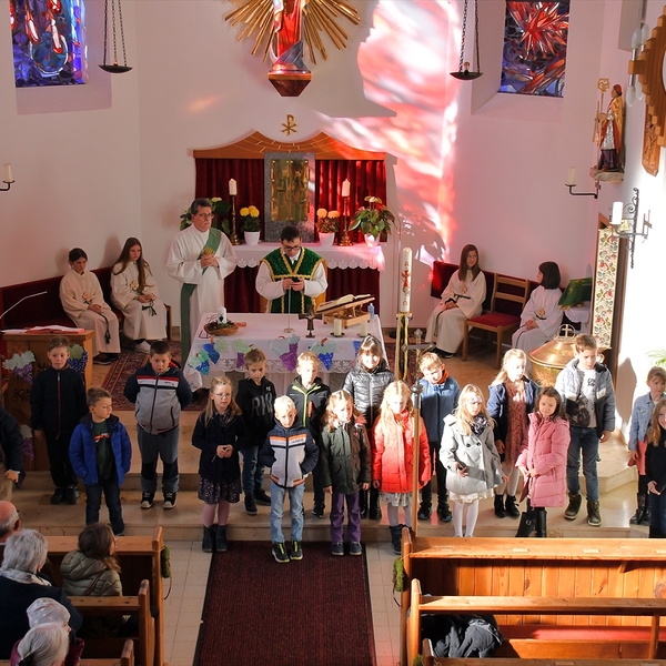 Nach einem Laternenumzug durch den Ort, zogen alle gemeinsam in die Kirche ein, um die Geschichte vom Heiligen Martin mit Dias zu sehen und zu hören. Natürlich durften zum Schluss die Martinskipferl zum Teilen nicht fehlen!
