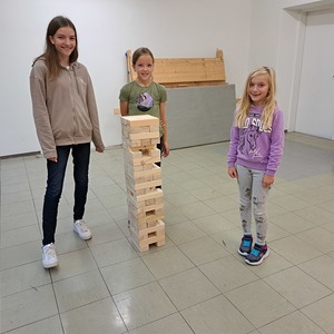 ...ich da mit meinen Freunden viele lustige Dinge machen kann. Letztes Mal haben die 3 "großen" unsere Ministrantenstunde geleitet. Es war sehr lustig, da es auch um das Thema Ostern ging. Als Erstes haben wir Ostereier rund um den Pfarrhof gesucht. Mit diesen Eiern haben wir dann in 3er Gruppen einen Eierlauf gemacht. Dann haben wir noch "Oascheiben" mit 2 verkreuzten Rechen gespielt. Anschließend sind wir nach drinnen gegangen und haben einen leckeren Osterstriezel gegessen. Gestärkt und aufgewärmt spielten wir "Dalli Dalli", dass sich ebenfalls Valerie, Franziska und Theresa ausgedacht hatten. Etwas später kam auch Markus dazu und setzte sich zu unserer Runde.