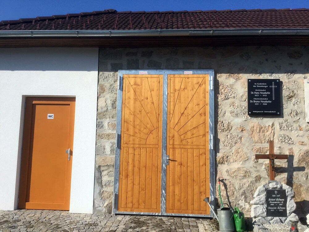 Friedhofsbaustelle beendet Im Oktober 2018 wurde die Sanierung und Vergrößerung des Totengräberhauses abgeschlossen. mehr: Friedhofsbaustelle beendet